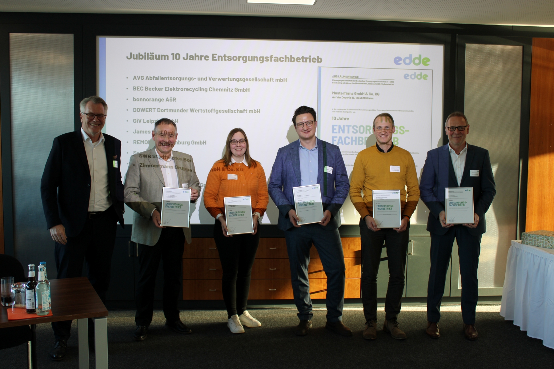 Am 20.11.2025 wurde uns die EdDE-Ehrenurkunde zum 10-jährigen Jubiläum der GIV Leipzig GmbH als Entsorgungsfachbetrieb überreicht.
